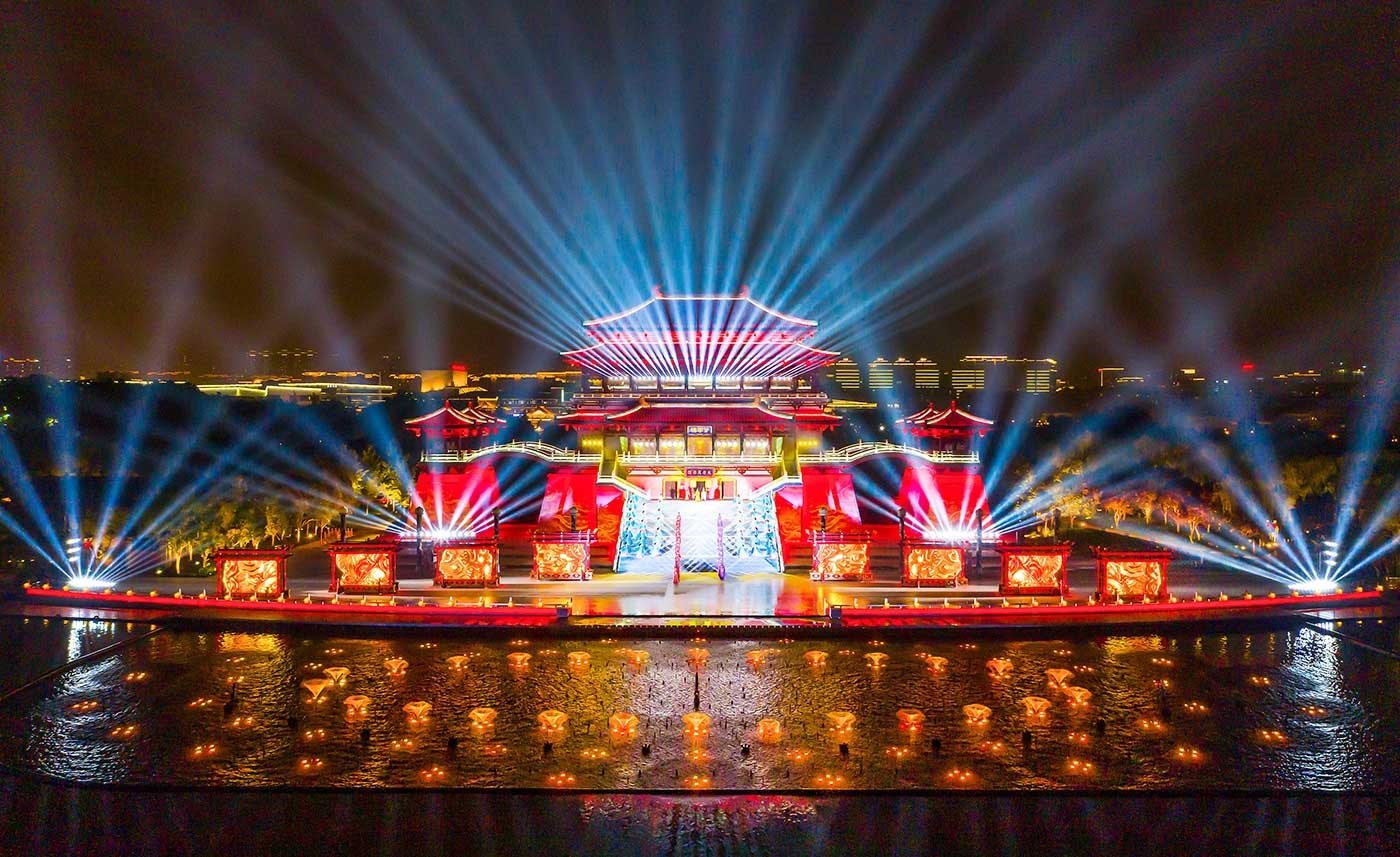 一池曲江水,千秋盛唐夢。《大唐追夢》演出是大唐芙蓉園即將推出的大型水舞光影秀,演出是由國家級制作人沙曉嵐擔(dān)任總導(dǎo)演,G20杭州峰會《最憶是杭州》、北京冬奧8分鐘執(zhí)行導(dǎo)演王醒及團(tuán)隊(duì)匠心打造的具有西安曲江特色“日游夜演”的全新概念文旅演藝產(chǎn)品。 大型水舞光影秀《大唐追夢》依托芙蓉園恢弘大氣的山水園林景觀,將盛唐文化和游客參與深度結(jié)合,通過場景、故事的演繹和各類新技術(shù)的運(yùn)用,從內(nèi)容上嘗試將觀眾心境與劇中的實(shí)景環(huán)境相銜接,踐行一種新的“游船尋夢”的體驗(yàn)關(guān)系。 觀眾席采用了“游船觀演式體驗(yàn)”形式,共設(shè)五艘游船,每艘游船可乘坐觀眾160人,共800座。觀眾乘船泛舟看演出的同時(shí),還能在水上游弋暢玩,隨著美輪美奐的場景,去探索神秘莫測劇情。展示出芙蓉園亭臺樓閣溢彩、廊橋水波輝映的迷人景致。營造出穿越千年,貫穿古今的浪漫意境,讓觀眾真切感受古樸濃郁的盛唐文化氣息。 整場演出的表演區(qū)則通過多組可升降水幕景觀藝術(shù)裝置、多色激光投射、多維水噴泉設(shè)備、霧森系統(tǒng)、建筑投影、沉浸式環(huán)繞音響等現(xiàn)代科技手段,烘托美輪美奐的獨(dú)特意境,呈現(xiàn)出一臺全新沉浸式全域水幕景觀秀,讓觀眾全身心地融入、盡享文化盛宴。 風(fēng)光旖旎迷人處,最是曲江夜游時(shí)。當(dāng)夜幕降臨,夢幻光影下的紫云樓無處不透露著濃郁文化氣息,芙蓉園用色彩相宜的照明設(shè)施,形成豐富的視覺層次感,營造雅致的夜游氛圍,使紫云樓夜間樓體的塑造、光景氣氛、照明效果更加立體、生動(dòng),為景區(qū)增添新的魅力。 演出中還大量加入了時(shí)下最先進(jìn)、最流行的透明“冰屏”,有了冰屏加持,舞臺效果瞬間變得驚艷。觀眾在觀看時(shí),畫面懸浮于空中,清晰通透,像浮在透明玻璃上一樣,享受著如夢如幻的沉浸式視覺新體驗(yàn)。 引人入勝的演出內(nèi)容、驚艷新奇的舞臺效果、豐富有趣的游玩體驗(yàn),大唐芙蓉園用拳拳誠意帶游客閱讀歷史、感受人文。大型水舞光影秀《大唐追夢》演出不僅展現(xiàn)出樹立旅游市場新旗幟、全力打造夜游市場新勢力的超強(qiáng)勢頭,更力圖將絢麗多彩、大氣恢宏的盛唐歌舞文化推向世界。 ...